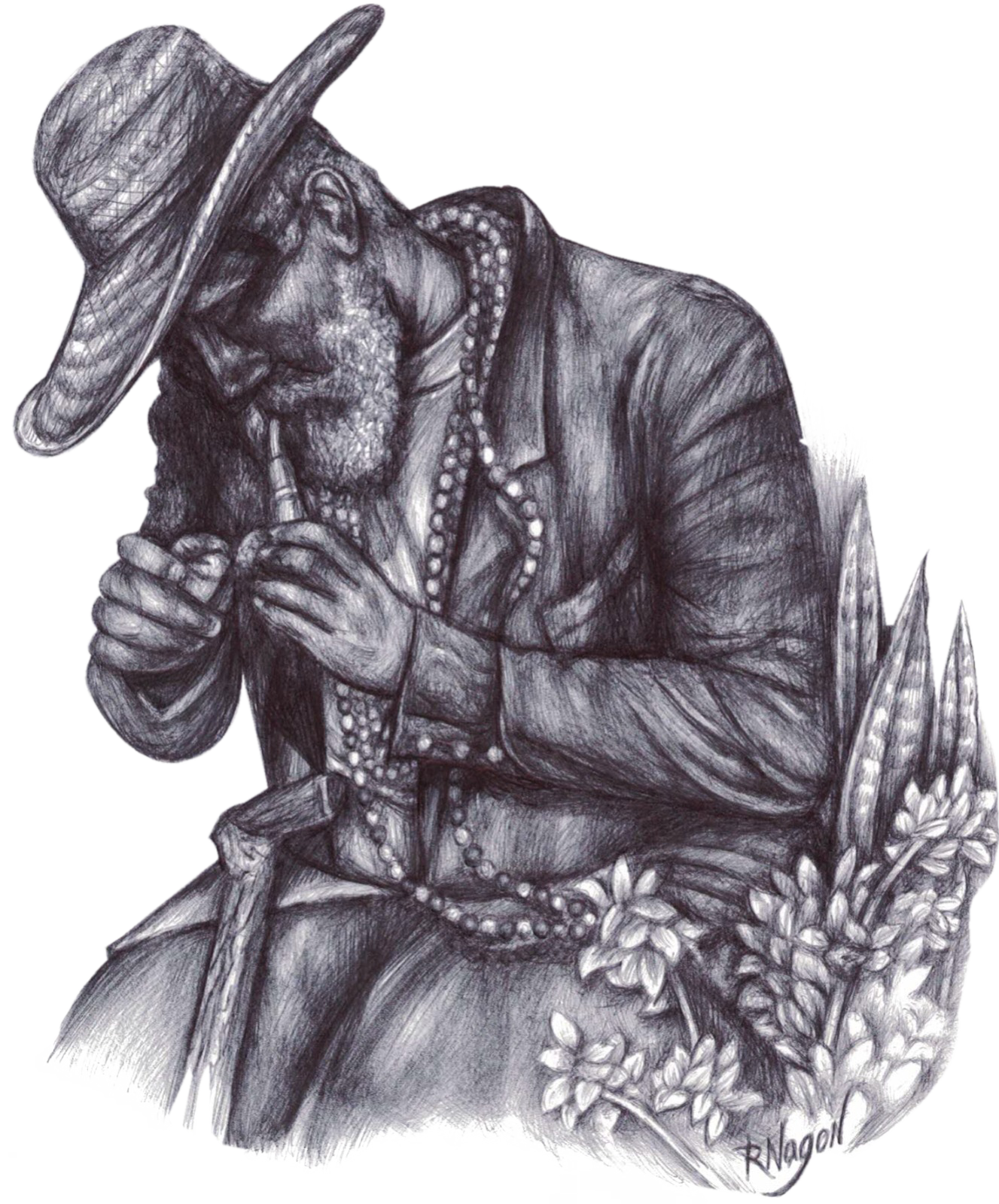 “Preto Velho aqui chegou, ele é Chico Prêto. Saravando e dançando, com sua bengala na mão, dando aos filhos sua benção.”