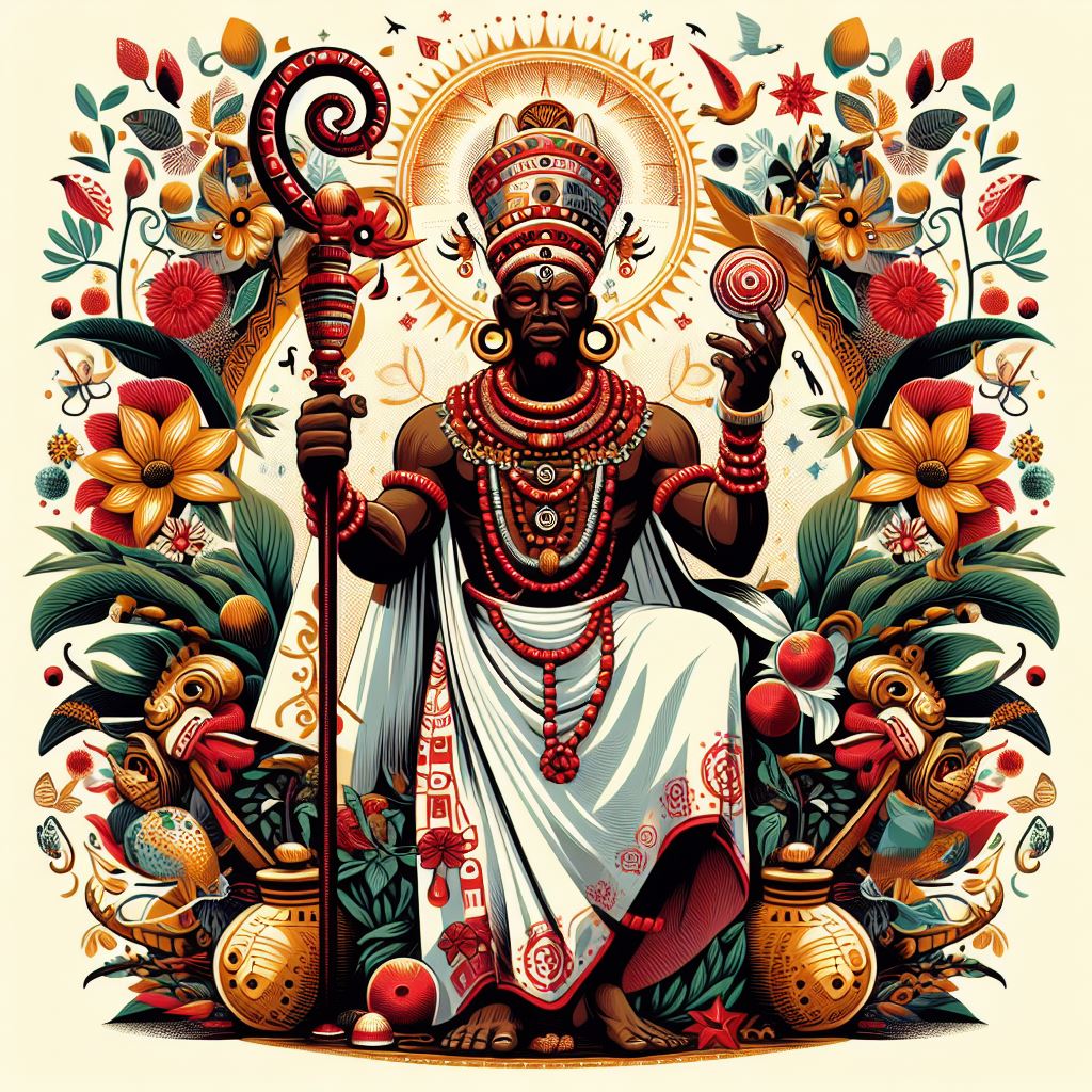 Omulu, também conhecido como Obaluaiê ou Xapanã. Orixá da cura, das doenças, da terra e da transformação. É invocado para trazer alívio e cura nas enfermidades físicas e espirituais é considerado protetor dos doentes e das pessoas marginalizadas pela sociedade.
