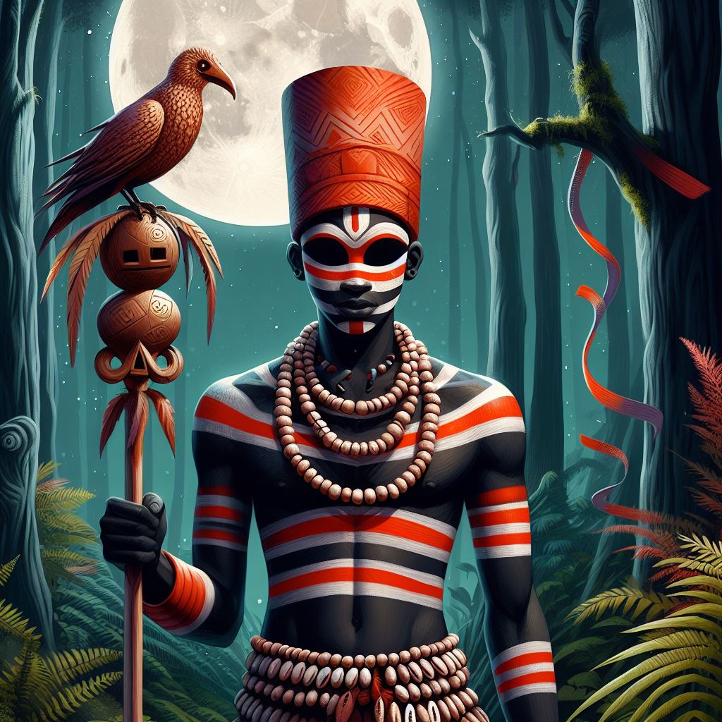 Poderoso curandeiro, capaz de utilizar ervas e plantas para a cura física e espiritual atua também como guardião da fauna e da flora, mantendo o equilíbrio ecológico e a harmonia entre os seres vivos.